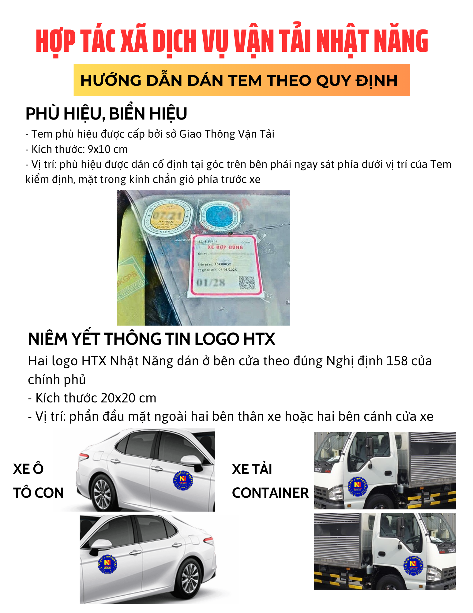 Hai Logo Hợp tác xã Nhật Năng (HTX Nhật Năng) được dán /niêm yết ở hai bên cánh cử xe theo đúng quy định pháp luật: